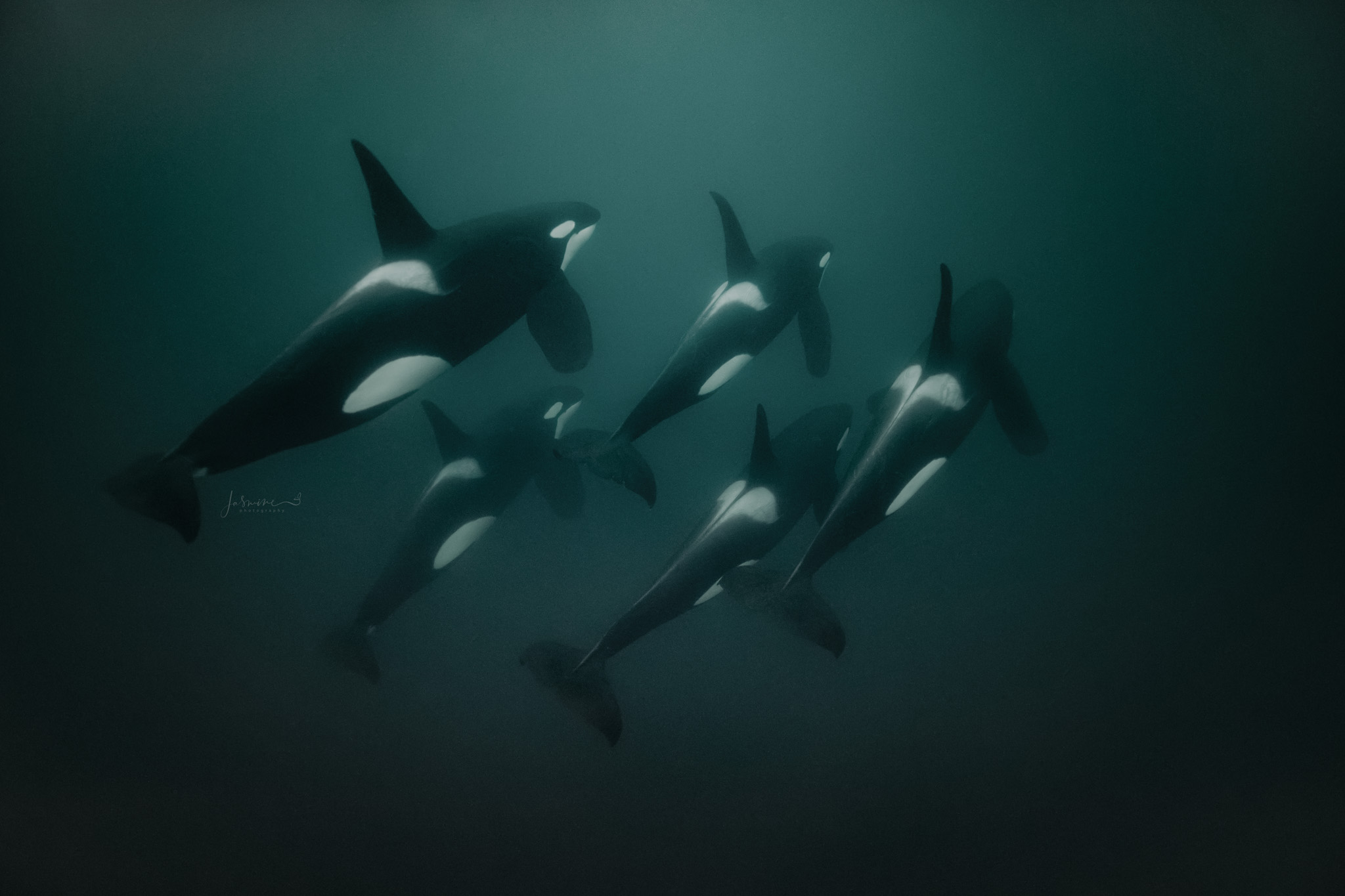 eating around 2 fishing boats! The spectacle was just jaw dropping. There were blows a plenty and the water was scattered with fish bits and scales glittering like snow into the depths. It looked like someone had just shaken up the ocean like a gigantic snow globe. The snow capped mountains once again were just as beautiful as before with the light peeking through. Everyone was a frenzy! It was amazing!!! You all have to come, even if it’s just for topside, it’s really something you needs to #witnesswithyourowneyes . Yes! Ok back to the #orcas what can I say other than OMG I missed them so much and they’re just as striking and sleek as before. We also had a great close pass with a Mama and her calf, which you can check out from our guests’ posts. The orcas were eating on the move today, so 🤞🏽for that stationary #herringball tomorrow 😉 💙 🐋